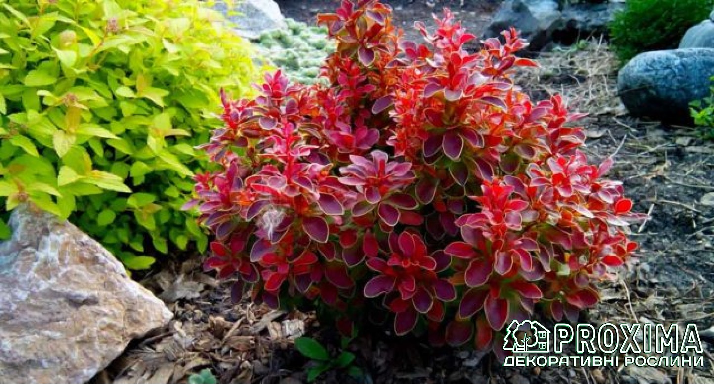 Купити барбарис Тунберга Рубі Стар в Києві за низькими цінами можна в розсаднику рослин PROXIMA - найбільшої колекції декоративних рослин для українського клімату.
