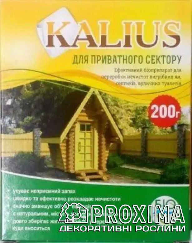 KALIUS — комплекс ефективних мікроорганізмів і ферментів, які пришвидшують природну нейтралізацію забруднень у стічних водах і каналізаційних системах. У разі потрапляння у вигрібну яму, туалет або септик біопрепарат KALIUS переробляє запахи у воду, вуглекислий газ і легкий осад, є добривом, збагаченим органічним азотом.