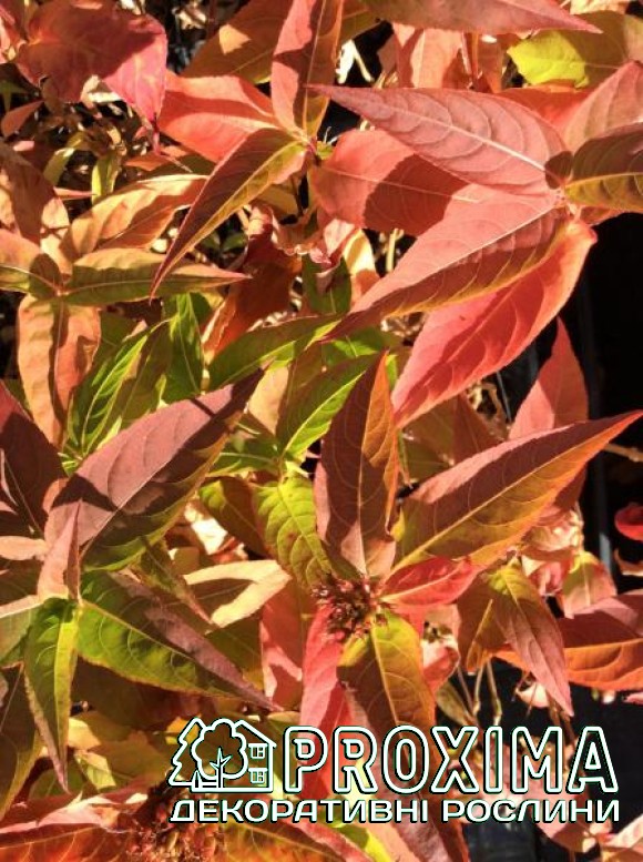 Восени кущ перетворюється на яскраву пляму завдяки відтінкам золотисто-жовтого, помаранчевого та навіть червоного кольорів.