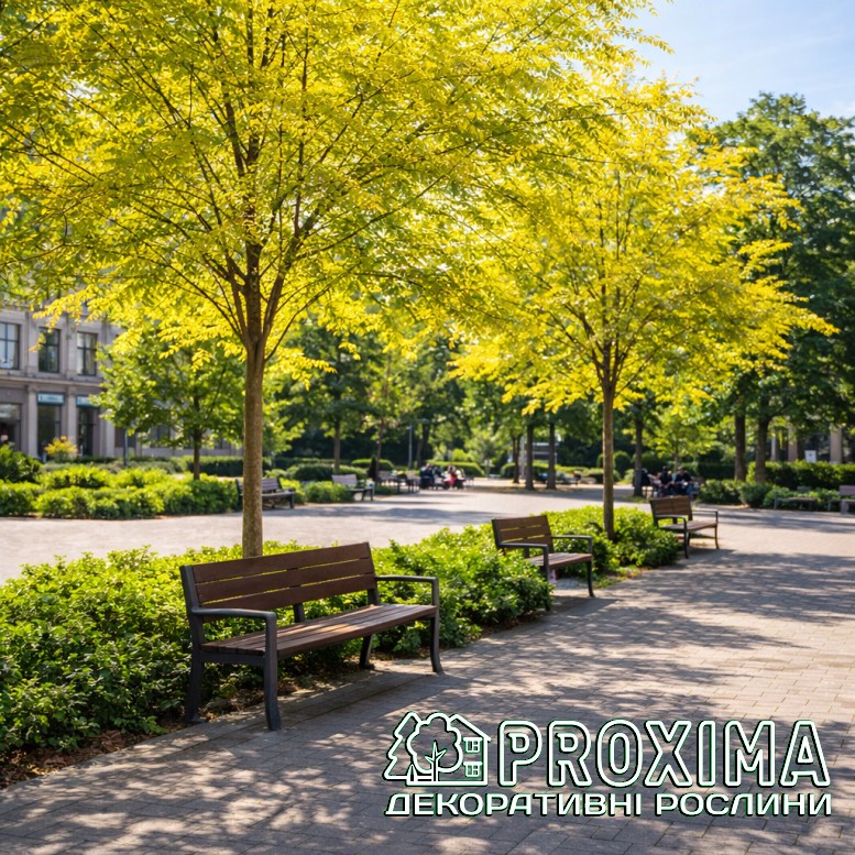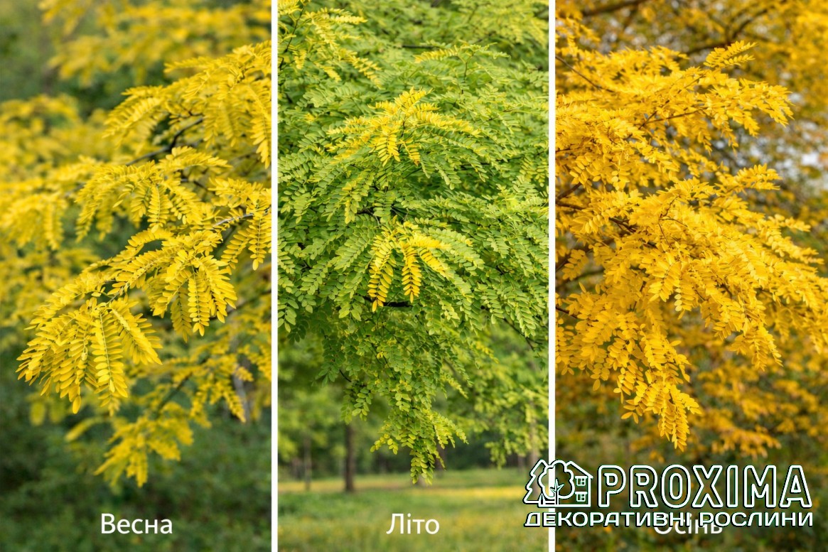 Купити Гледичію колючу Санберст в Києві за низькими цінами можна в розсаднику рослин PROXIMA - найбільшої колекції декоративних рослин для українського клімату.