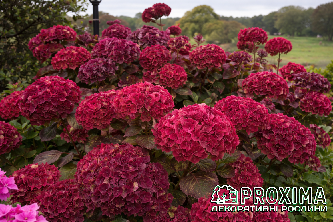 Купити Гортензію широколисту Ребеліон Шоко Лав в Києві за низькими цінами можна в розсаднику рослин PROXIMA - найбільшої колекції декоративних рослин для українського клімату.