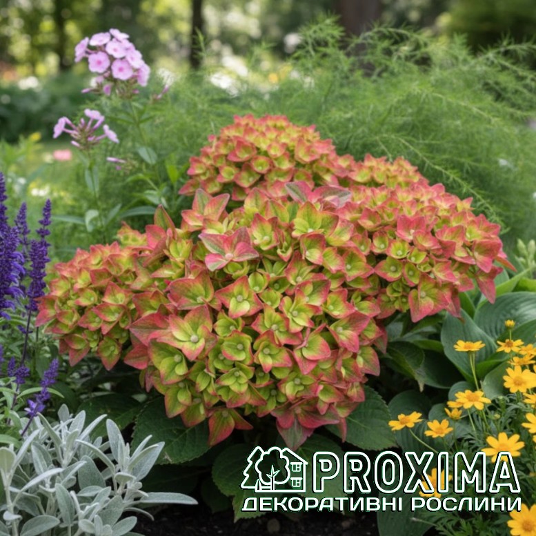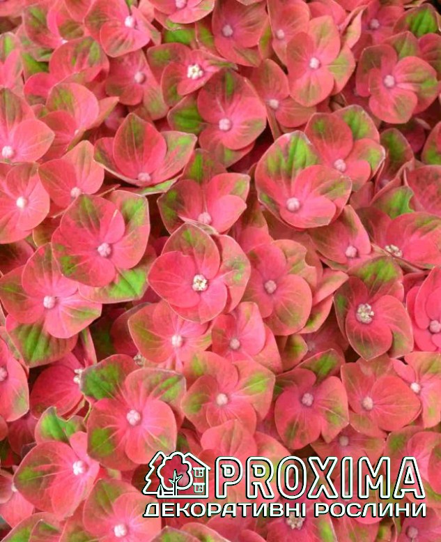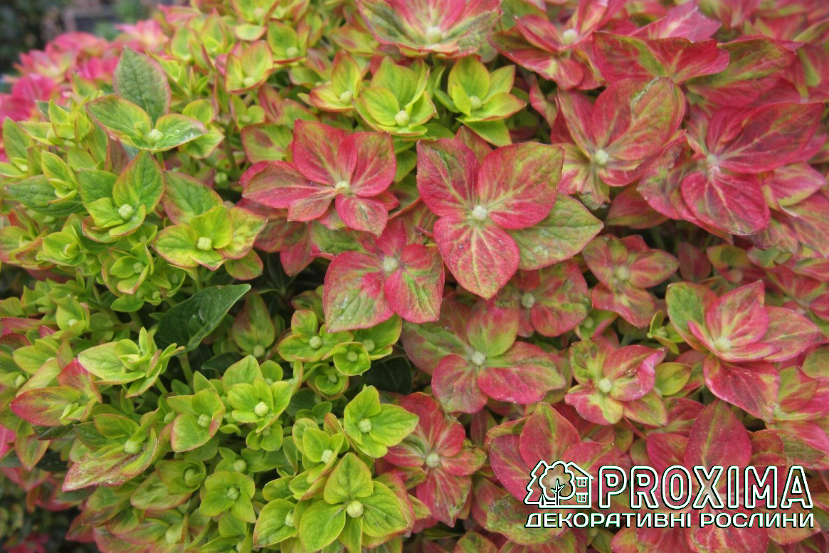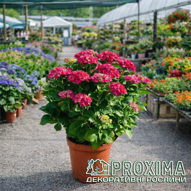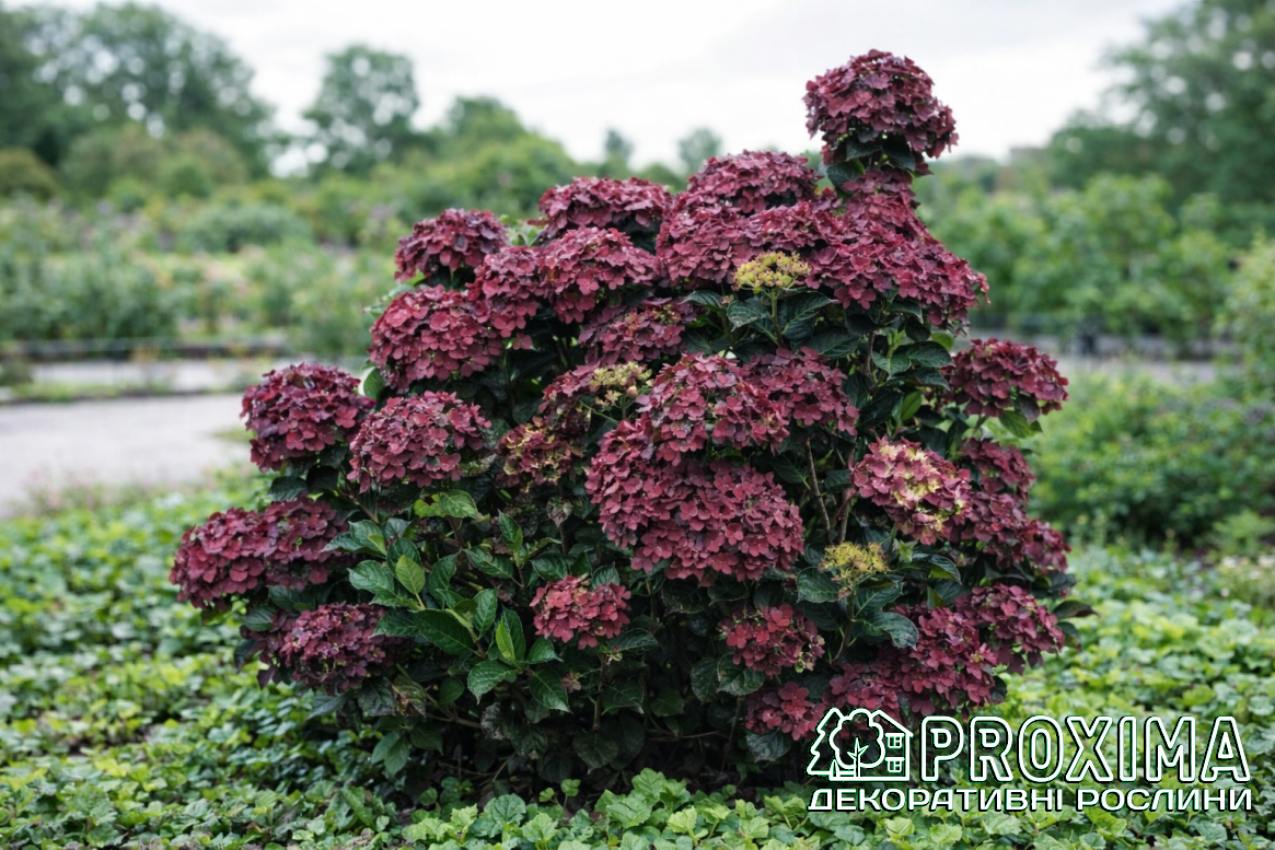 Купити Гортензію широколисту Рембрандт Россо Глорі в Києві за низькими цінами можна в розсаднику рослин PROXIMA - найбільшої колекції декоративних рослин для українського клімату.