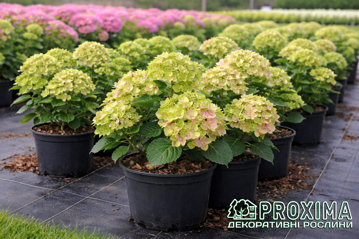 Купити Гортензію широколисту Рембрандт Вібрант Верде в Києві за низькими цінами можна в розсаднику рослин PROXIMA - найбільшої колекції декоративних рослин для українського клімату.