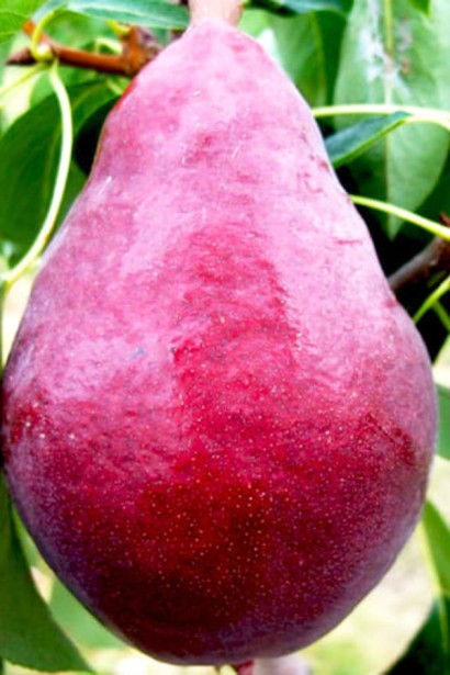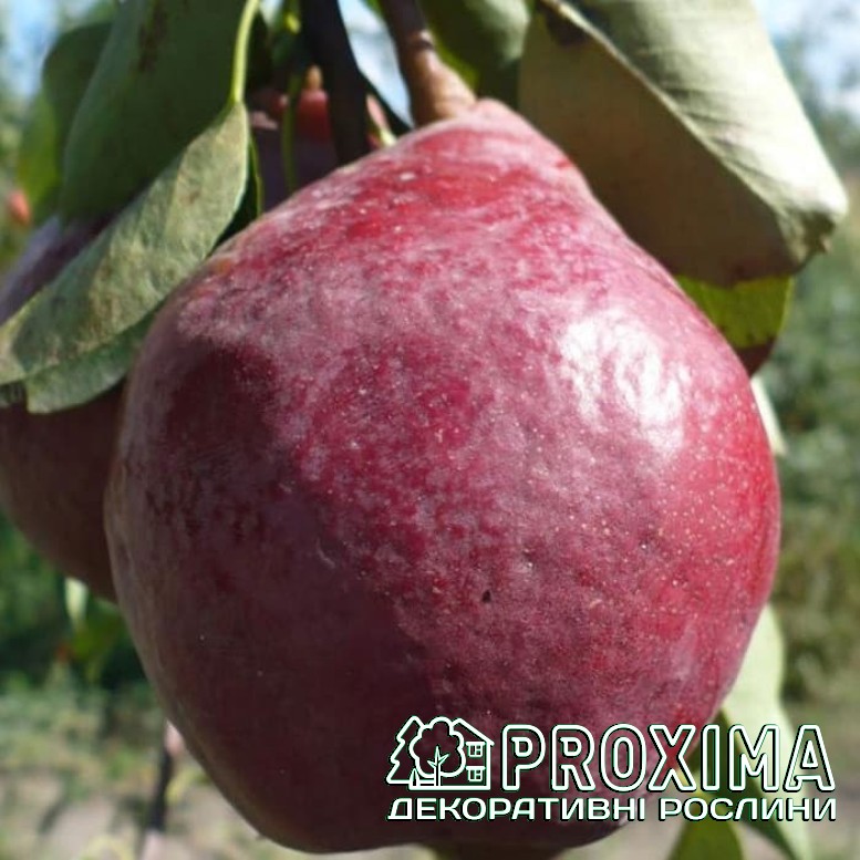 Плоди: Великі (до 200 г), грушоподібної форми, при дозріванні набувають насиченого бордово-червоного кольору. М’якуш кремовий, соковитий, ніжний, із солодким смаком і приємною кислинкою. Дозрівають у серпні–вересні.