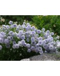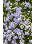 Квіти: Напівмахрові, світло-блакитні з відтінками лаванди, діаметром до 2 см, зібрані в розсипчасті суцвіття. Виглядають майже як маленькі трояндочки.