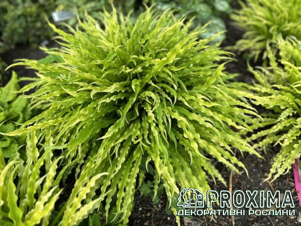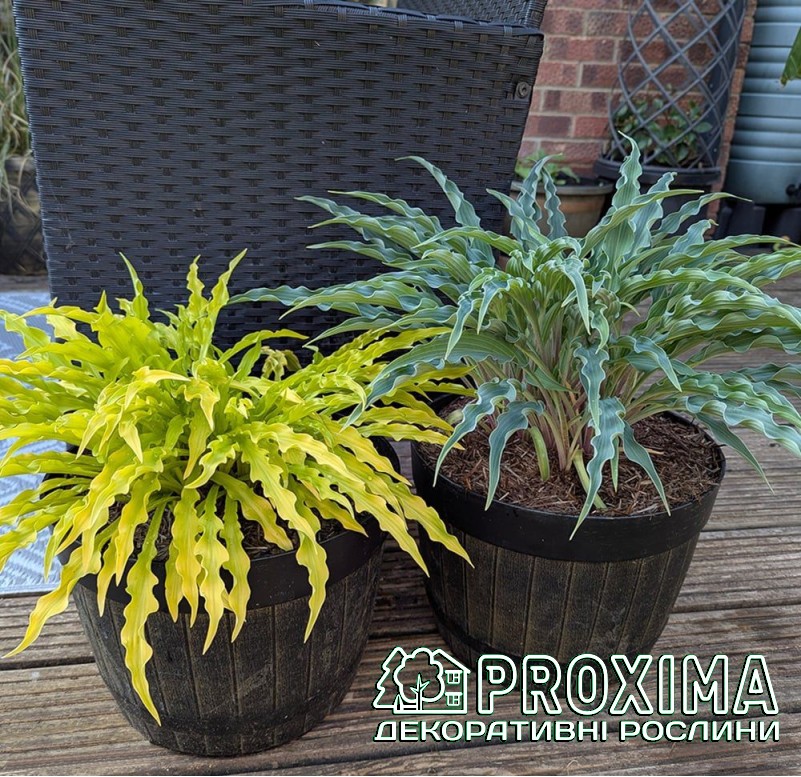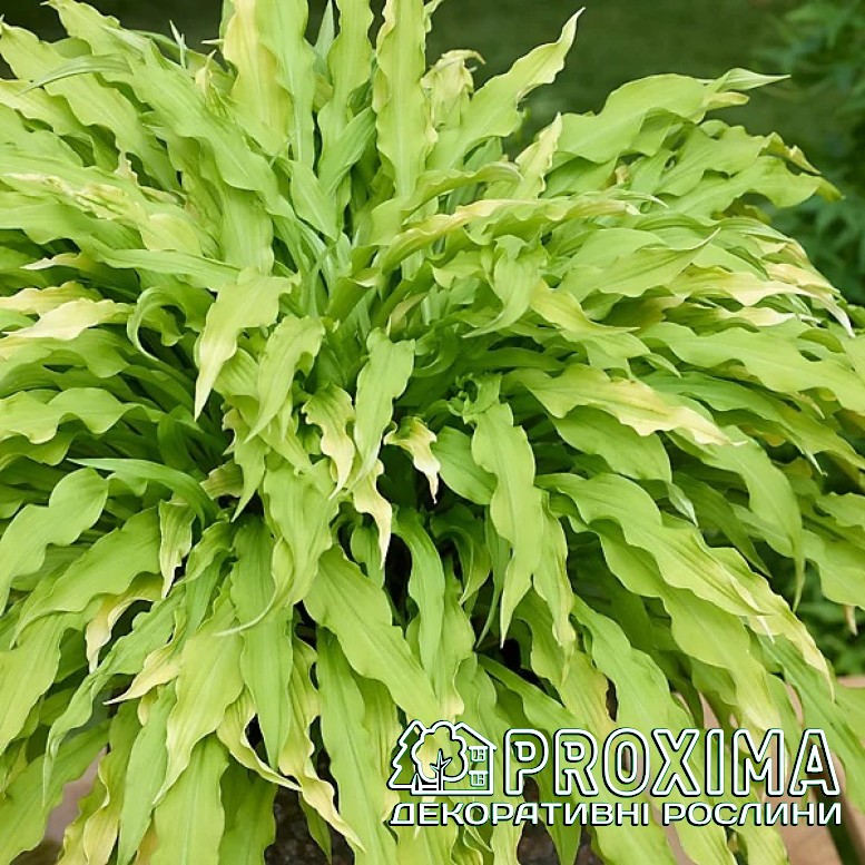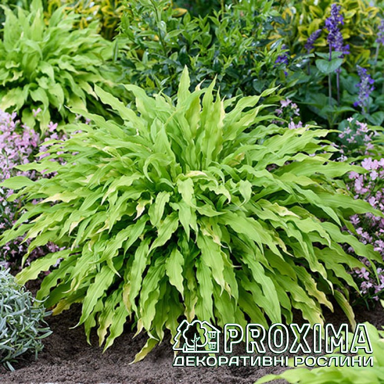 Опис сорту: Хоста Паті Стрімерс — це справжній феєрверк у світі тіньового саду. Її вузькі, стрічкоподібні листки немов святкові серпантини, що розлітаються в різні боки легкими каскадами. Яскраво-жовте, майже неонове забарвлення сяє навіть у напівтіні, додаючи композиціям сонячної енергії та руху. Кущ формує витончену, фонтаноподібну куртину, яка виглядає легкою й грайливою. Листя хвилясте, видовжене, золотисто-жовте. У середині літа над листям піднімаються ніжні лавандові квіти — мов повітряні кульки над святковим натовпом. ’Party Streamers’ ідеально підходить для переднього плану квітників, контейнерів або як яскравий акцент у тіні дерев. Це сорт, що приносить у сад настрій свята — легкий, динамічний і по-справжньому незабутній.