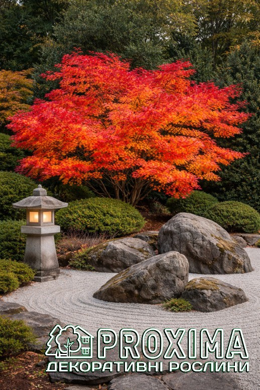 Форма: Має витончену вазоподібну або широку округлу крону. Гілки ростуть мальовничими ярусами, створюючи той самий «архітектурний» силует, за який так цінують японські клени. З віком дерево стає розлогішим і набуває ще більш благородного вигляду.