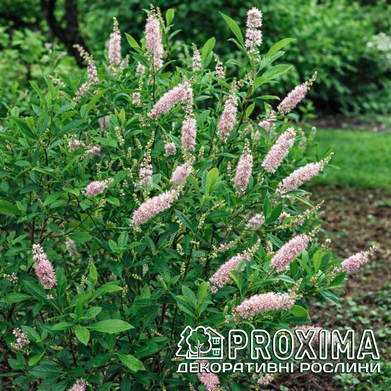 Опис сорту: Clethra alnifolia 'Pink Spire' — ніжний літній акорд у саду, коли більшість кущів уже відцвіли й тиша наповнює зелені куточки спокоєм. У розпал літа вона раптом піднімає над листям витончені рожеві свічки суцвіть — стрункі, запашні, мов легкий серпанок над теплим повітрям. Її крона щільна, охайна, з овальним темно-зеленим листям, яке створює глибокий фон для цвітіння. Квіти зібрані у вертикальні китиці, що поступово розкриваються знизу вгору, наповнюючи простір солодким, медовим ароматом. У сонячний день навколо куща завжди відчувається рух — бджоли й метелики злітаються на запашний нектар, оживляючи сад. ‘Pink Spire’ любить вологі, кислуваті ґрунти та почувається прекрасно біля водойм, у напівтіні або на сонці за достатнього зволоження. Восени її листя набуває теплих золотисто-жовтих відтінків, завершуючи сезон м’яким світлом. Це рослина настрою — спокійна, вишукана, з легкою романтичною нотою. Вона не кричить яскравістю, а зачаровує ароматом і текстурою, додаючи саду глибини та відчуття живої, літньої гармонії.