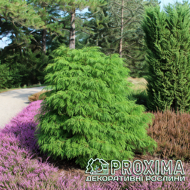 Застосування у ландшафті: Завдяки своїй унікальній «пухнастій» текстурі та стабільному зеленому кольору, цей сорт є універсальним інструментом для дизайнера. На фоні доглянутого газону вона виглядає як екзотична зелена скульптура. Її м’який силует притягує погляд і створює атмосферу спокою. Японські та гравійні сади це класика для східної стилістики. Вона ідеально поєднується з камінням, ліхтарями та водоспадами. Чудово виглядає в оточенні рослин із контрастною текстурою — наприклад, поруч із широколистими рододендронами, магноліями або яскравими японськими кленами. Завдяки густій кроні, що добре піддається стрижці, з неї можна формувати м’які, наче оксамитові, вічнозелені стіни, які захищають сад від шуму та вітру. Через помірний ріст її часто вирощують у великих керамічних горщиках для прикрашання терас, патіо або вхідних зон (у цьому випадку на зиму контейнер потребує додаткового утеплення).