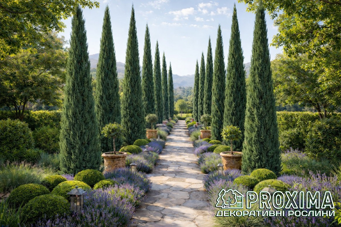 Застосування у ландшафті: Кипарис вічнозелений Тотем — це не просто хвойне дерево, а витончена вертикаль, яка ніби малює простір тонкою зеленою лінією. У ландшафті він працює як архітектор тиші: не перевантажує, не домінує, а лише підкреслює форму, ритм і глибину саду. Його стрункий силует нагадує живий обеліск — стриманий, вишуканий, із характером південних краєвидів. Варто лише з’явитися цьому кипарису в саду — і в повітрі вже відчувається легкий подих Тоскани, теплі відтінки каменю та спокій середземноморських вечорів біля Середземного моря.