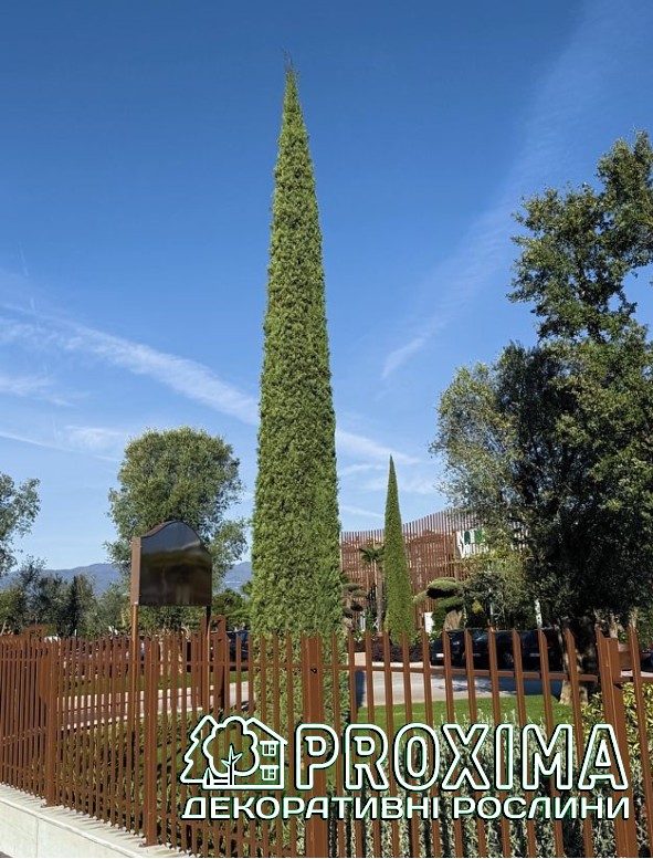 Розмір: В умовах України доросла рослина зазвичай досягає 4–6 м заввишки. При цьому ширина крони залишається надзвичайно компактною — лише 40–60 см у діаметрі, що створює винятково стрункі пропорції.