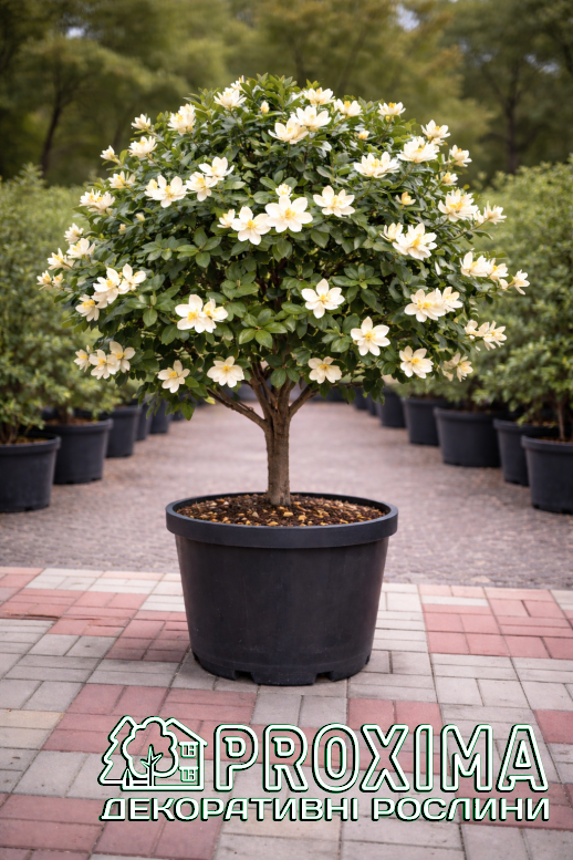 Вічнозелена структура забезпечує стабільну декоративність впродовж усього року. Листя добре тримає колір, не втрачаючи виразності навіть у спекотні періоди, і створює розкішний фон для ароматних кремово-білих квітів під час цвітіння.