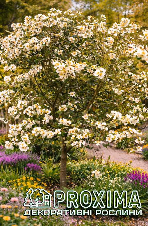 Під час цвітіння кущ рясно вкривається ароматними кремово-білими квітами чашоподібної форми. Завдяки повільному росту та компактним розмірам сорт чудово підходить для невеликих садів, терас і контейнерного вирощування. Зберігає декоративність протягом усього року та не потребує складного догляду.