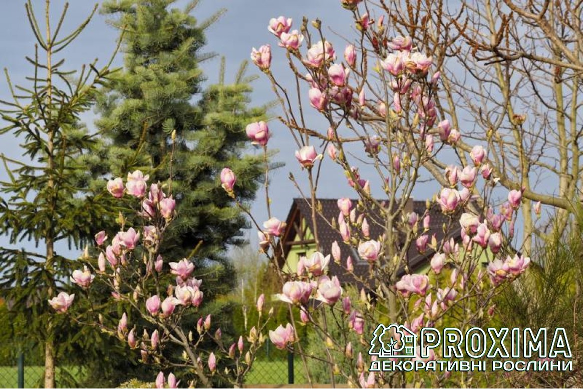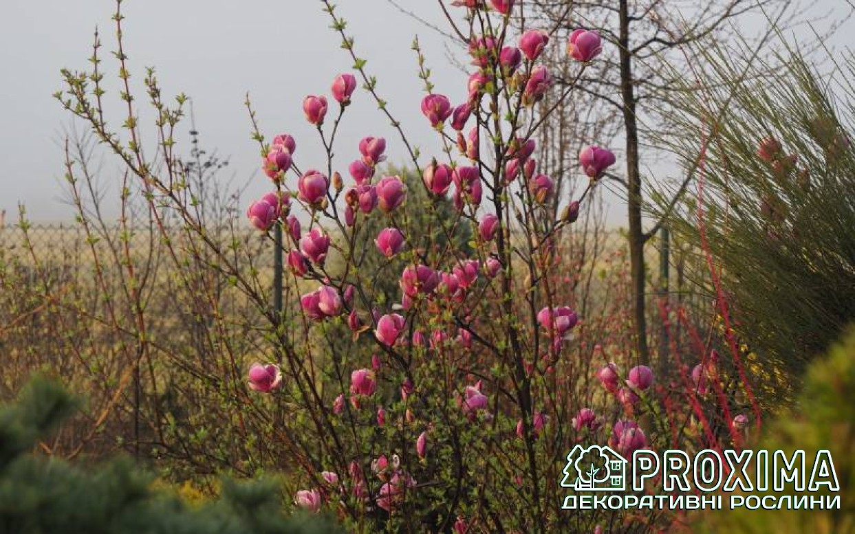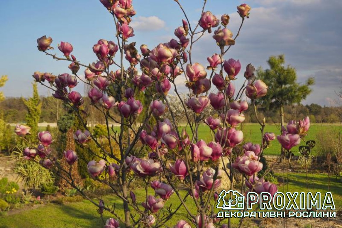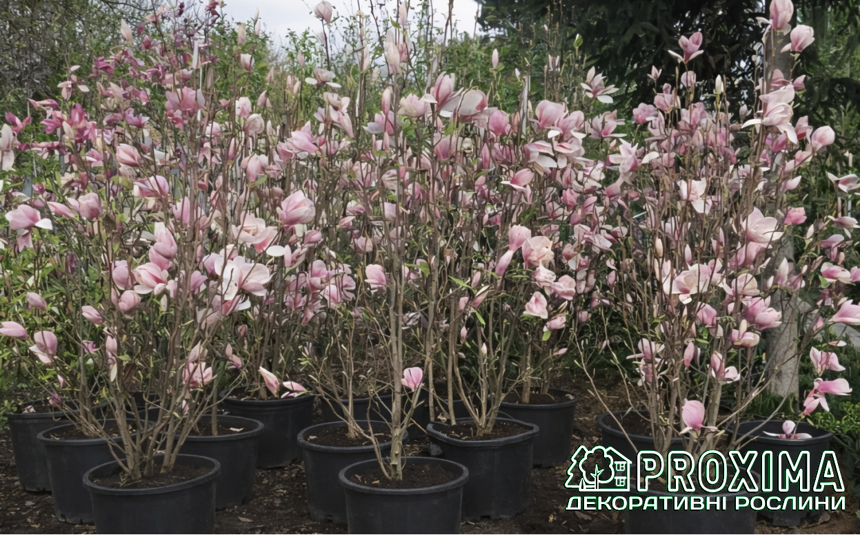 Купити Магнолія Суланжа Ломбарді Роуз в Києві за низькими цінами можна в розсаднику рослин PROXIMA - найбільшої колекції декоративних рослин для українського клімату.