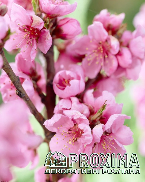 Цвітіння: Рясне, у квітні. Квіти рожеві, великі, декоративні, з’являються одночасно з розпусканням листя.