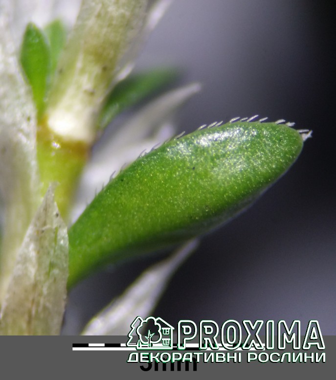 Листя: Листя дрібне, довгасте, сріблясто-зелене, з густим опушенням, яке створює ефект м’якого блиску. Візуально декоративне протягом усього сезону.