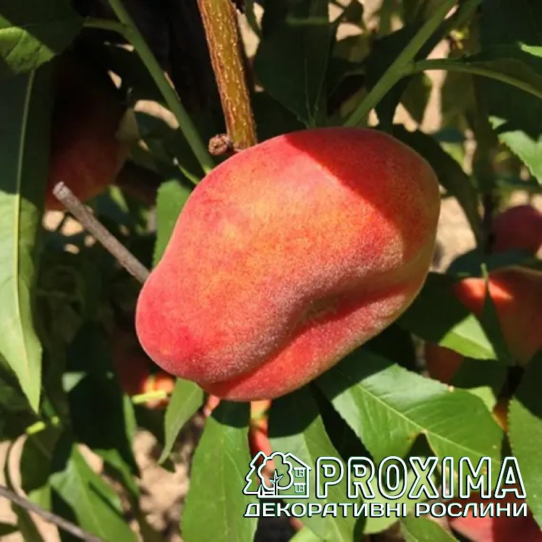 Походження / історія: Сорт отриманий у Європі як добірна форма інжирного (плаского) персика з декоративним забарвленням плодів і стабільною врожайністю. Відрізняється поліпшеними смаковими властивостями та гарною адаптацією до українських кліматичних умов.