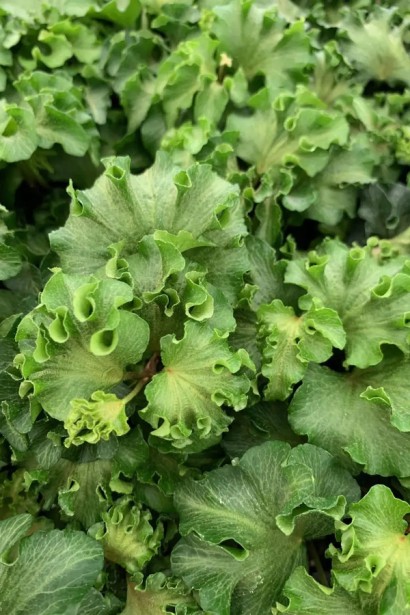 Листя: Темно-зелене, дуже гофроване, лопатеве, з хвилястими краями — унікальна текстура, що нагадує листя петрушки. Зберігає декоративність у будь-яку пору року, включаючи зиму.