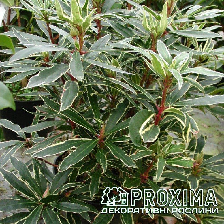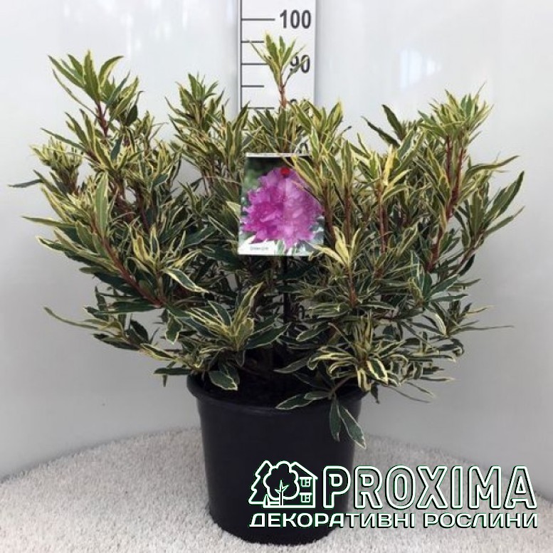Всі рослини розсадника Проксіма забезпечені добривами пролонгованої дії європейської якості на 2-3 місяці. Купуючи рослини в контейнері, Ви маєте можливість висаджувати їх без додаткових добрив з березня до грудня - навіть в літню спеку. Rhododendron ’Variegatum’