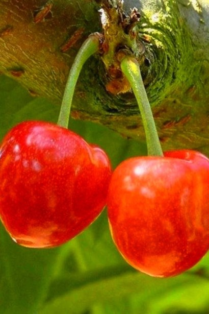 Плоды:Крупные (7–9 г), округло-сердцевидной формы, темно-красные, с блестящей кожицей. Мякоть плотная, сочная, рубиново-красная, с выраженным сладким вкусом и легкой кислинкой. Косточка среднего размера, хорошо отделяется от мякоти.