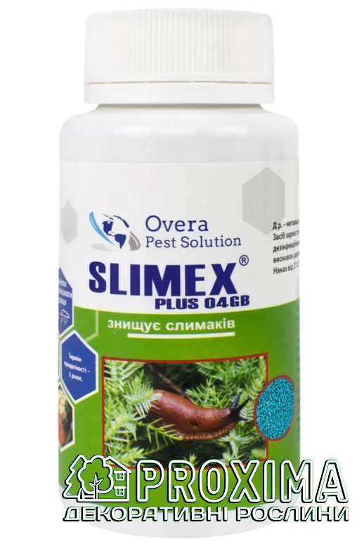 Этот препарат содержит в составе активное вещество – металльдегид – молюскоцид контактно-кишечного действия, которое повреждает слизистые клетки в пищеварительном тракте моллюсков, что приводит к их гибели. Благодаря дополнительным добавкам и феромонам, вредители быстро находят гранулы по запаху и активно поедают их. После попадания в организм улитки слизни начинают выделять избыточное количество слизи, затем теряют способность двигаться и через 2 дня полностью высыхают. Препарат Слимекс+ эффективно используется для защиты культурных и других растений от виноградной улитки, сетчатой слизни, садовой улитки, огородной слизни и других видов моллюсков.