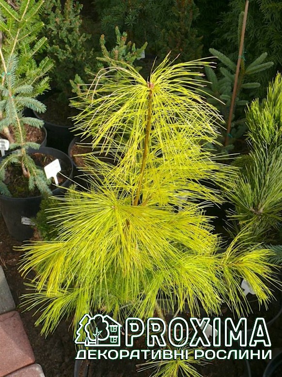 Купити сосну Веймутова Пасіфік Санрайз в Києві за низькими цінами можна в розсаднику рослин PROXIMA - найбільшої колекції декоративних рослин для українського клімату.