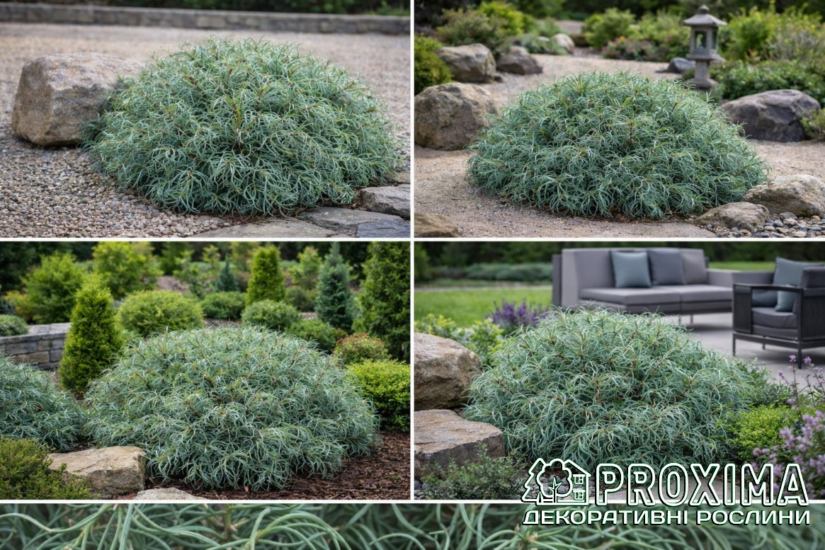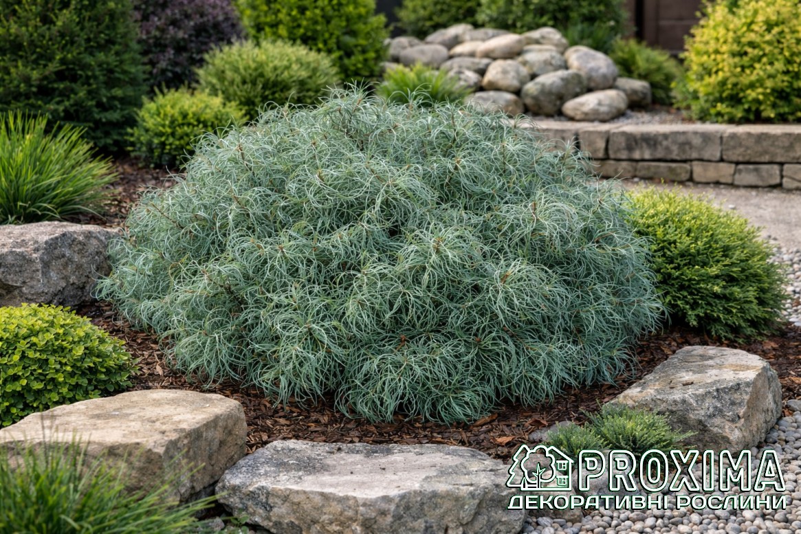 Купити Сосну веймутову Сквіглс в Києві за низькими цінами можна в розсаднику рослин PROXIMA - найбільшої колекції декоративних рослин для українського клімату.