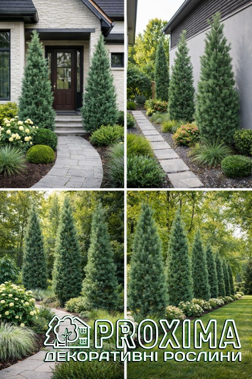 У сучасному мінімалістичному дизайні ця сосна може виступати як солітер — стриманий, але виразний акцент на фоні газону, гравію чи мульчі. А в природних композиціях її м’яка сріблясто-блакитна хвоя додає легкості та «повітря», пом’якшуючи загальну масу зелені. Також ‘Stowe Pillar’ добре працює як жива ширма або вертикальний екран — наприклад, для зонування простору чи створення фону для квітучих багаторічників.