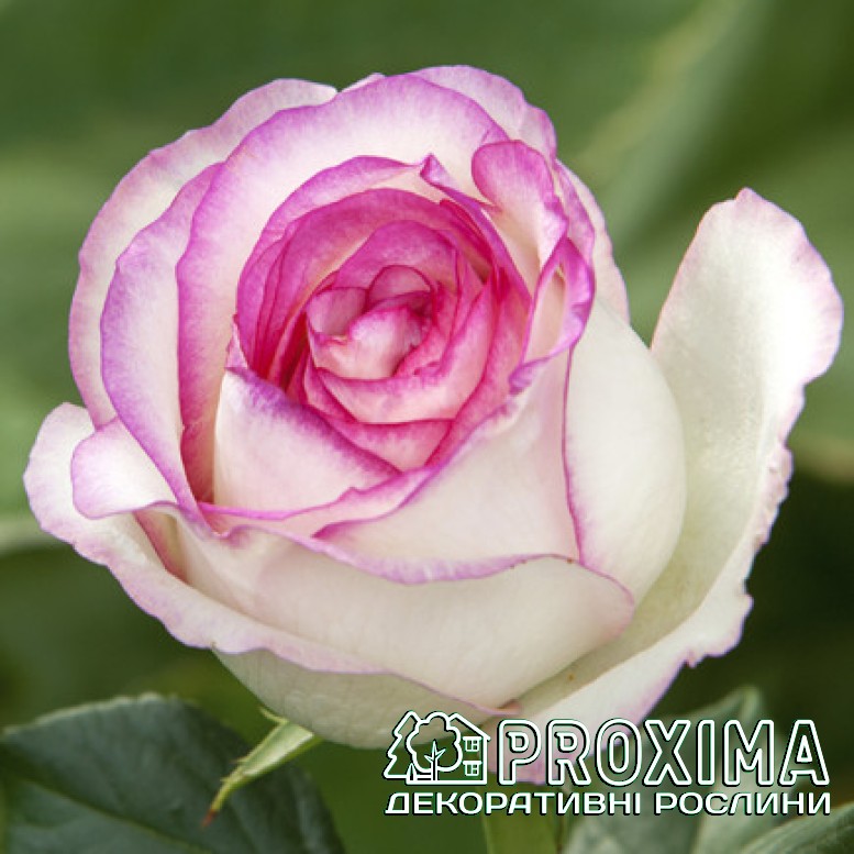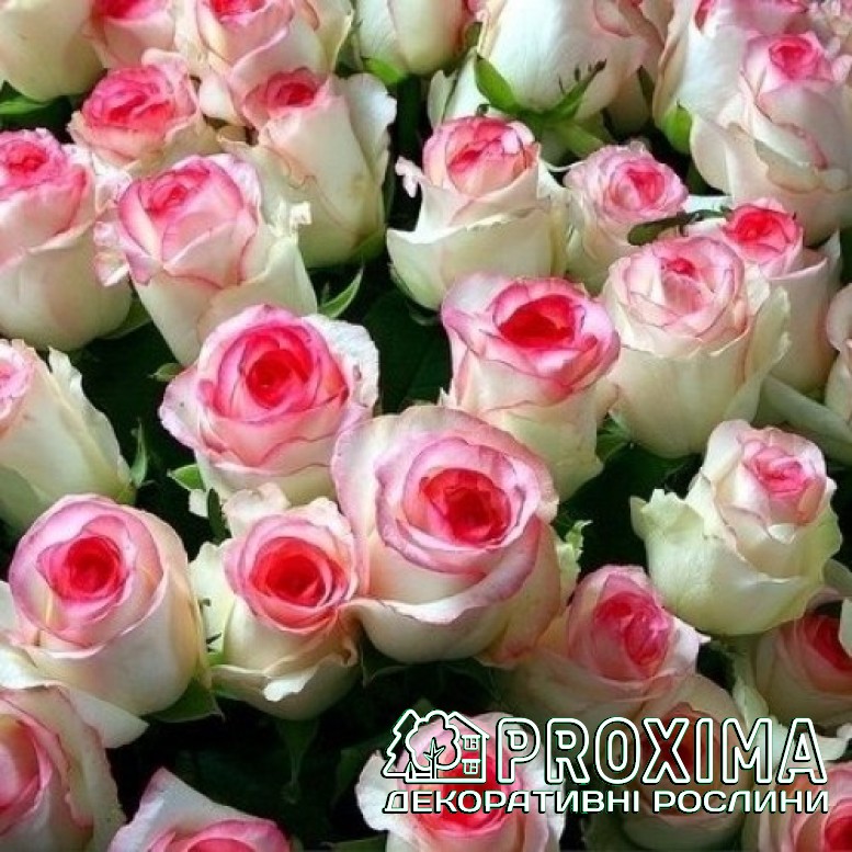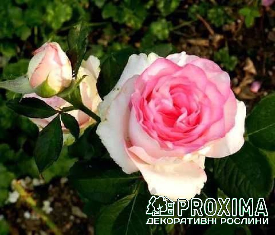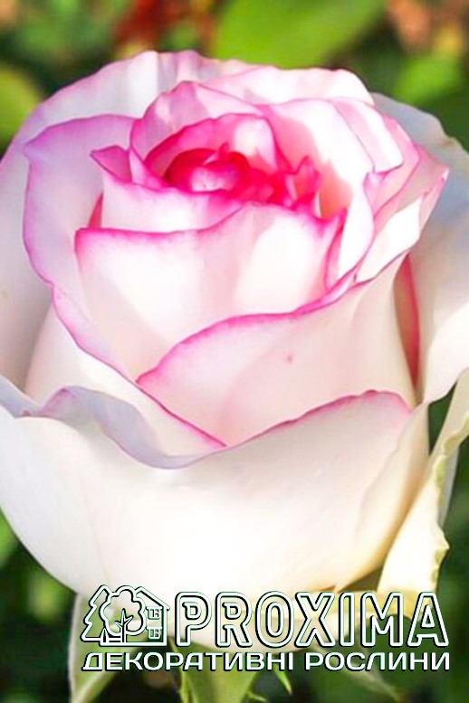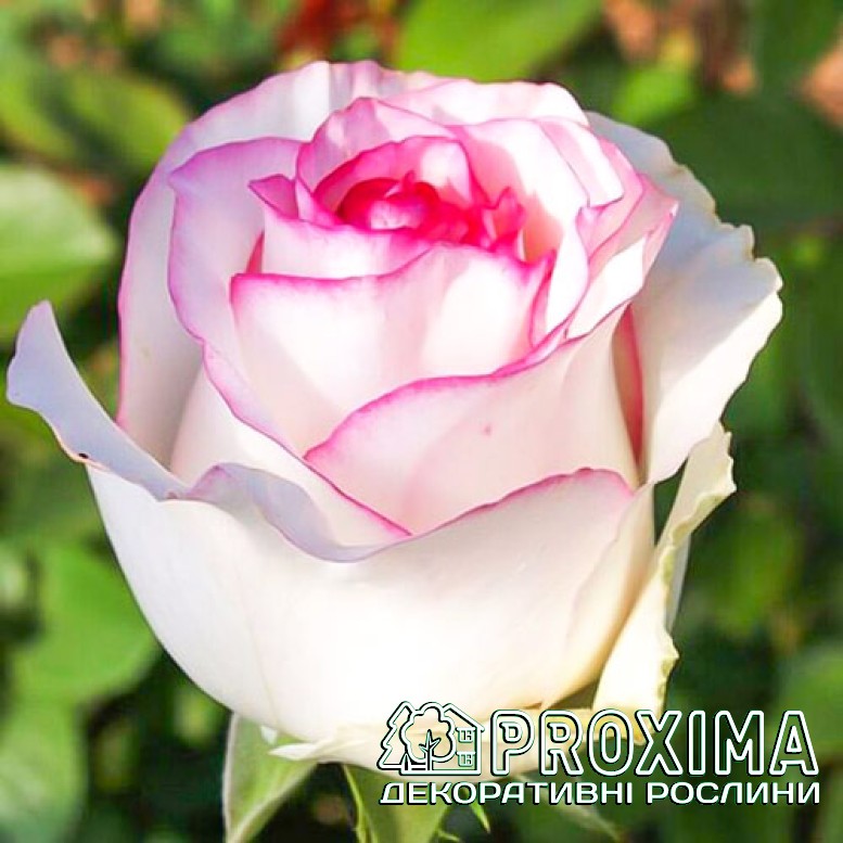 Троянда чайно-гібридна ‘Дольче Віта’ (біла з рожевою каймою)|Hybrid tea rose ‘Dolce Vita’|Роза чайно-гибридная ‘Дольче Вита’ (белая с розовой каймой)