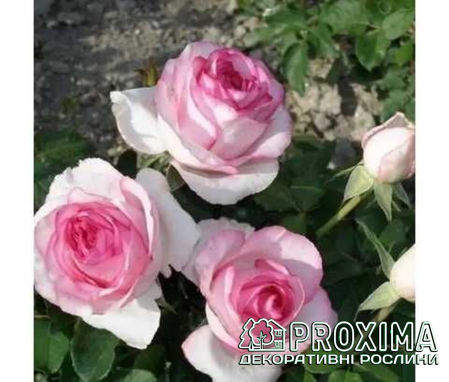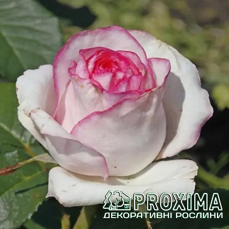Троянда чайно-гібридна ‘Дольче Віта’ (біла з рожевою каймою)