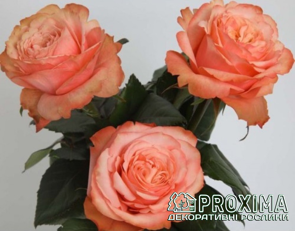 Квіти: Великі, діаметром 8–10 см, густомахрові, із щільними оксамитовими пелюстками. Відтінки змінюються від персиково-абрикосового до ніжно-лососевого з рожевими нотками. Квіти мають елегантну келихоподібну форму та зберігають декоративність навіть у зрізці.