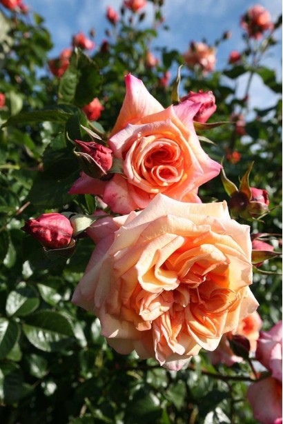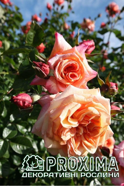 Квіти: Персикові, густомахрові, чашоподібні, 10–12 см у діаметрі. У суцвітті зібрані по 3–5 квіток. Витримують дощ і сонце, добре тримають форму.