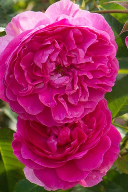 Квіти: Великі (10–12 см у діаметрі), махрові, темно-малинового відтінку з оксамитовим блиском. Зібрані у суцвіття по 3–7 квіток.