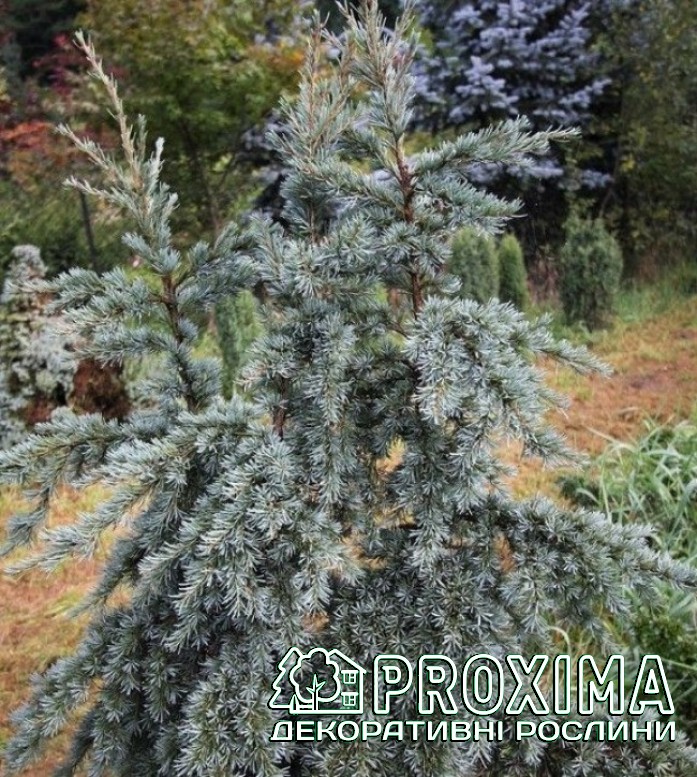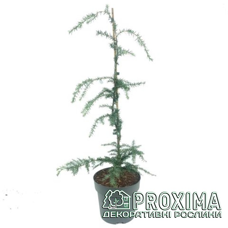 Дерево формує мальовничу пірамідальну крону з плакучими гілками. Верхівка та кінці пагонів граційно звисають донизу, нагадуючи застиглий блакитний водоспад. Хвоя дрібна, м’яка і дуже густа, що робить дерево візуально легким, майже «повітряним». Це одна з небагатьох блакитних хвойних рослин, яка чудово почувається в тіні. На відміну від сосен, вона не втрачає колір без прямого сонця.