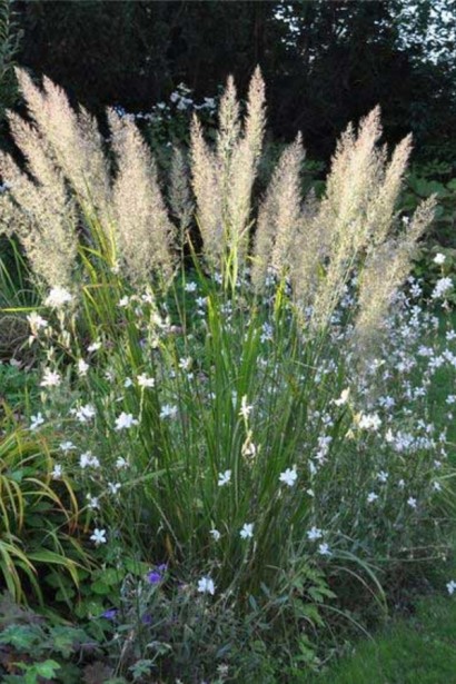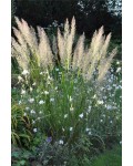 Квіти: Мітелки вузькі, вертикальні, зеленувато-сріблясті, з часом набувають жовто-коричневого відтінку. Зберігають декоративність до осені.