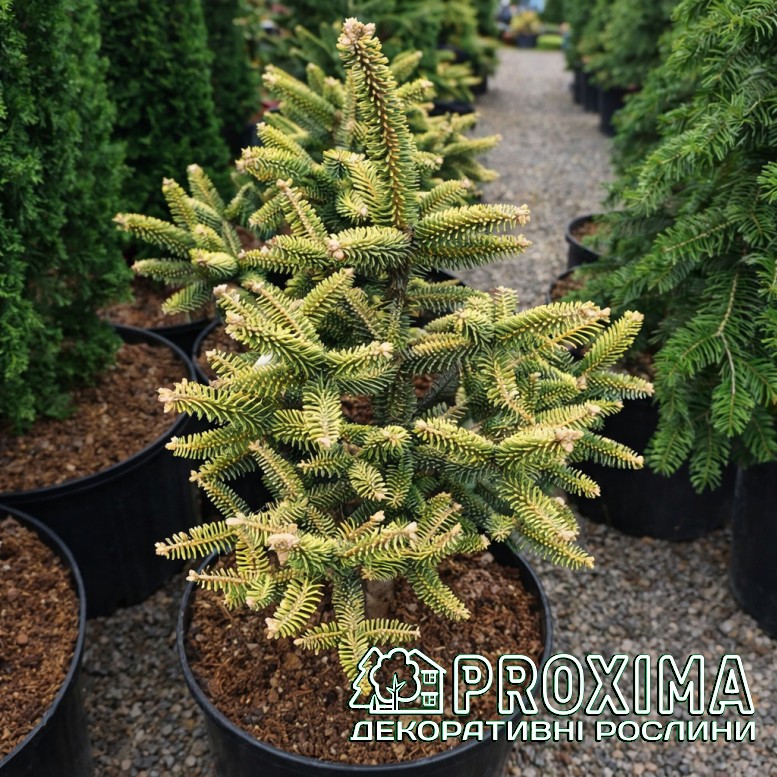 Купити Ялицю іспанську Ауреа в Києві за низькими цінами можна в розсаднику рослин PROXIMA - найбільшої колекції декоративних рослин для українського клімату.