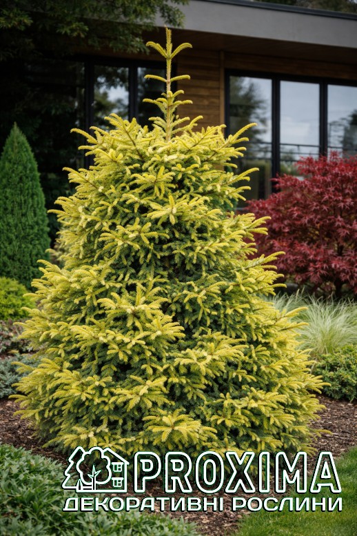 Опис сорту: Ялиця іспанська Ауреа — рідкісна й вишукана форма іспанської ялиці, що зачаровує золотистим сяйвом хвої. Молоді прирости навесні спалахують теплими жовто-лимонними відтінками, поступово переходячи в м’яке зелено-золоте забарвлення. Завдяки густому розміщенню коротких хвоїнок крона виглядає щільною, майже скульптурною, з чіткою геометрією. Сорт вирізняється повільним ростом і благородною зовнішністю, що робить його ідеальним солітером для колекційних садів, парадних зон та ландшафтів із акцентом на форму й колір. ‘Aurea’ додає простору світла, глибини та відчуття середземноморської розкоші, залишаючись декоративним протягом усього року.